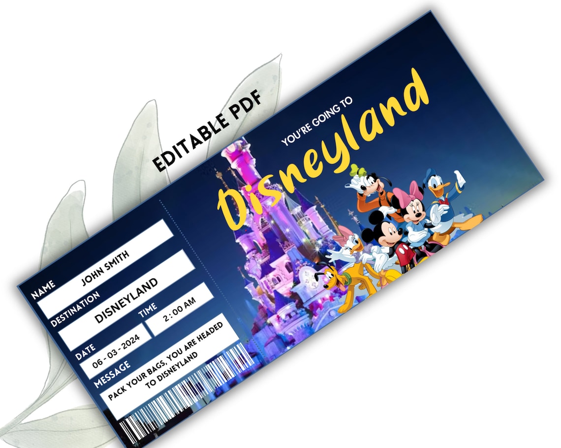 Editable Disneyland Ticket Template Disneyland Ticket Etsy