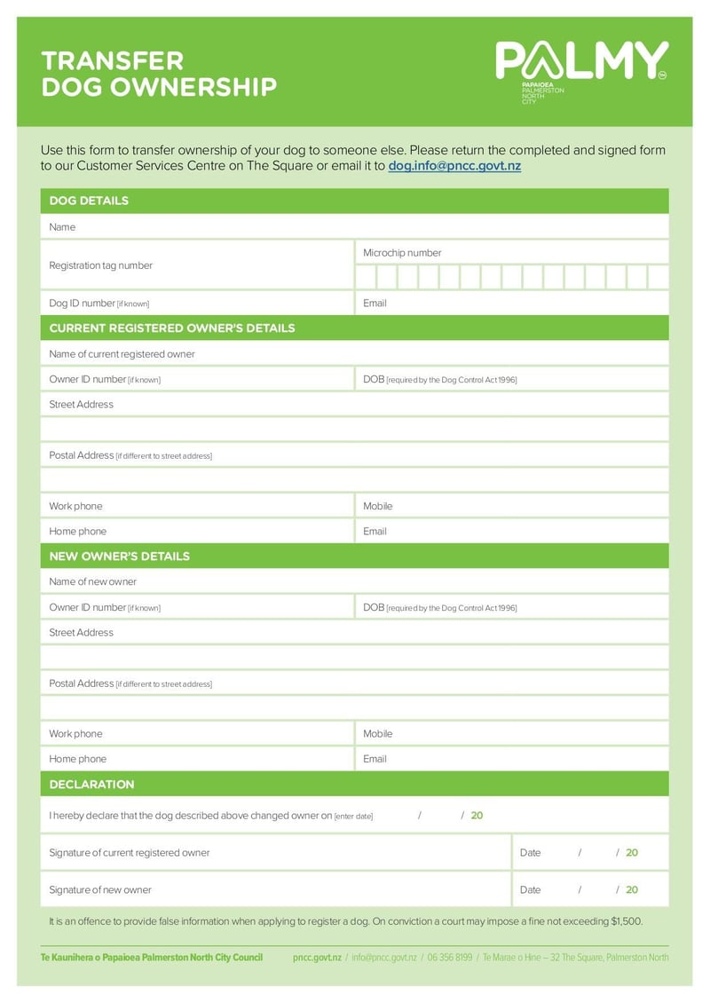 Printable Dog Transfer Of Ownership Form Printable New Year Banners