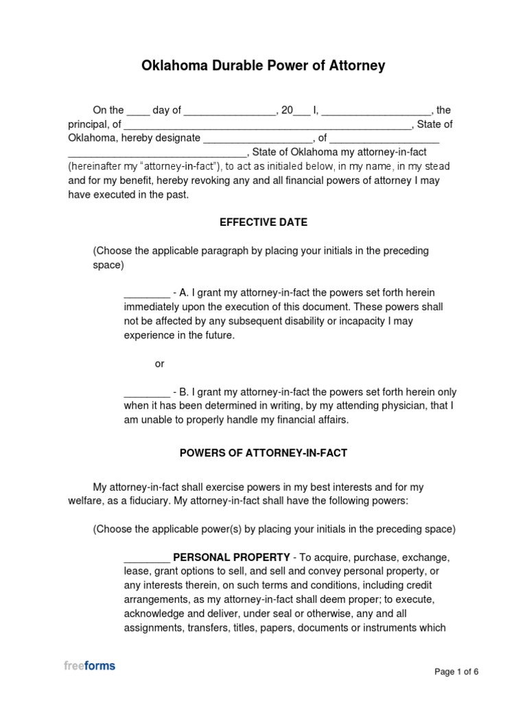 Free Printable Durable Power Of Attorney Oklahoma