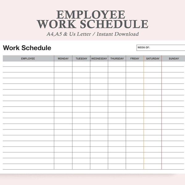 Employee Schedule Template Printable PDF Weekly Timesheet Etsy