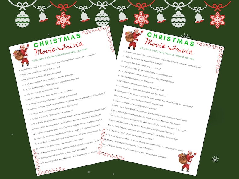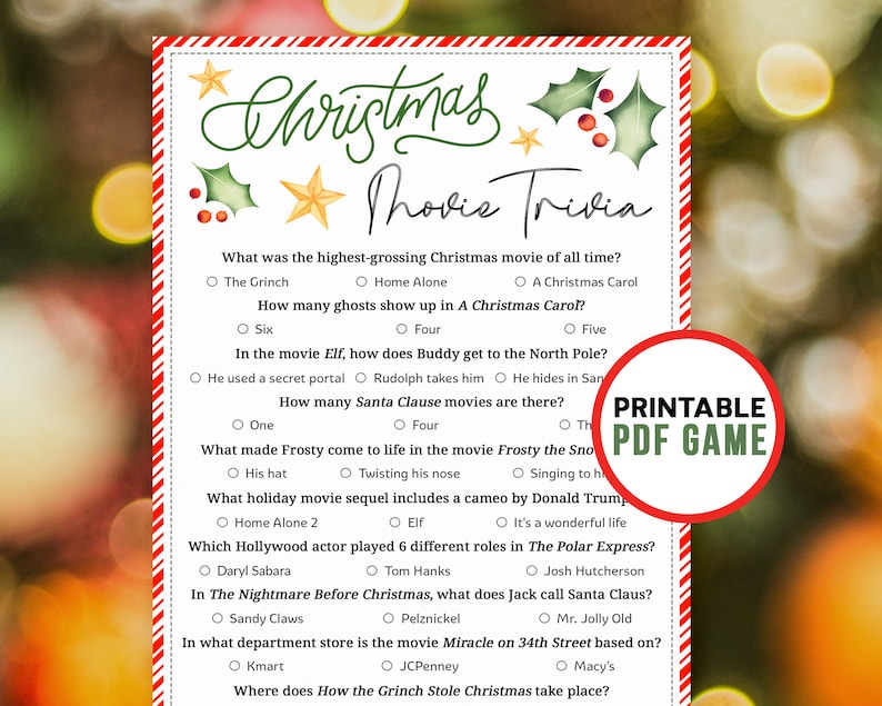 Christmas movie night free printable movie trivia cards Artofit