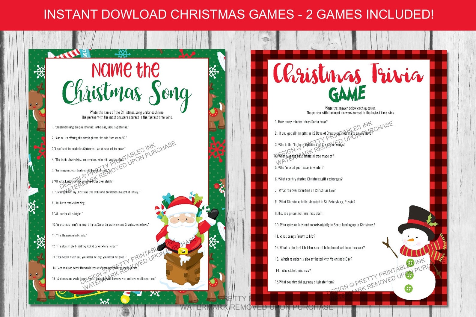 Christmas Games Bundle Printable Christmas Trivia Party Game