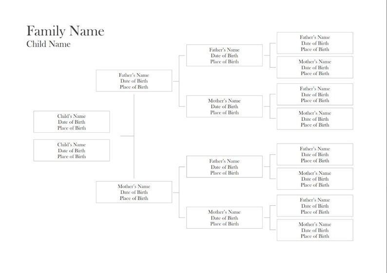 Fillable Printable Family Tree Chart 2 Siblings 5 Generations Etsy