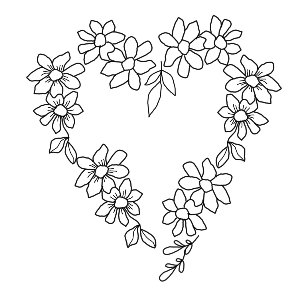 Floral Heart Black Outline Minimalist PNG and SVG Files Dovnload Etsy