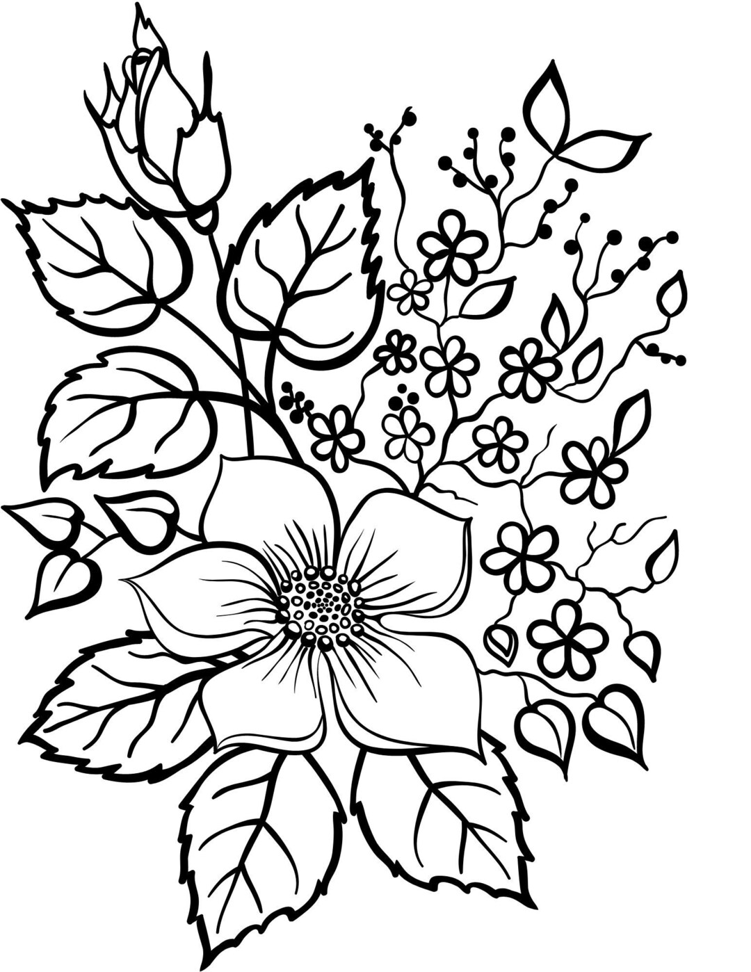 Flowers Printable Coloring Page Etsy