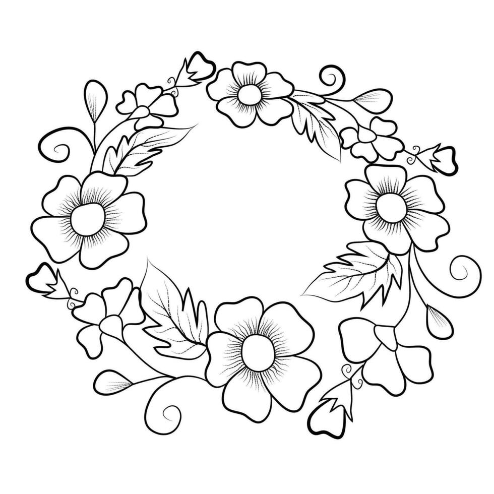 Premium Vector Vector drawing of a round frame made of flowers Linear