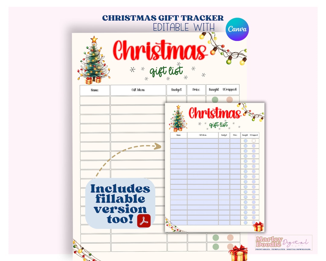 Editable and Fillable Christmas Gift List Tracker Christmas Budget