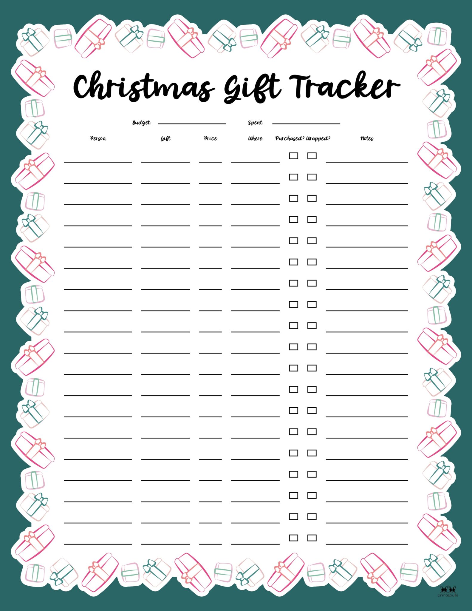 FREE Printable Christmas Gift Buying Tracker Free christmas