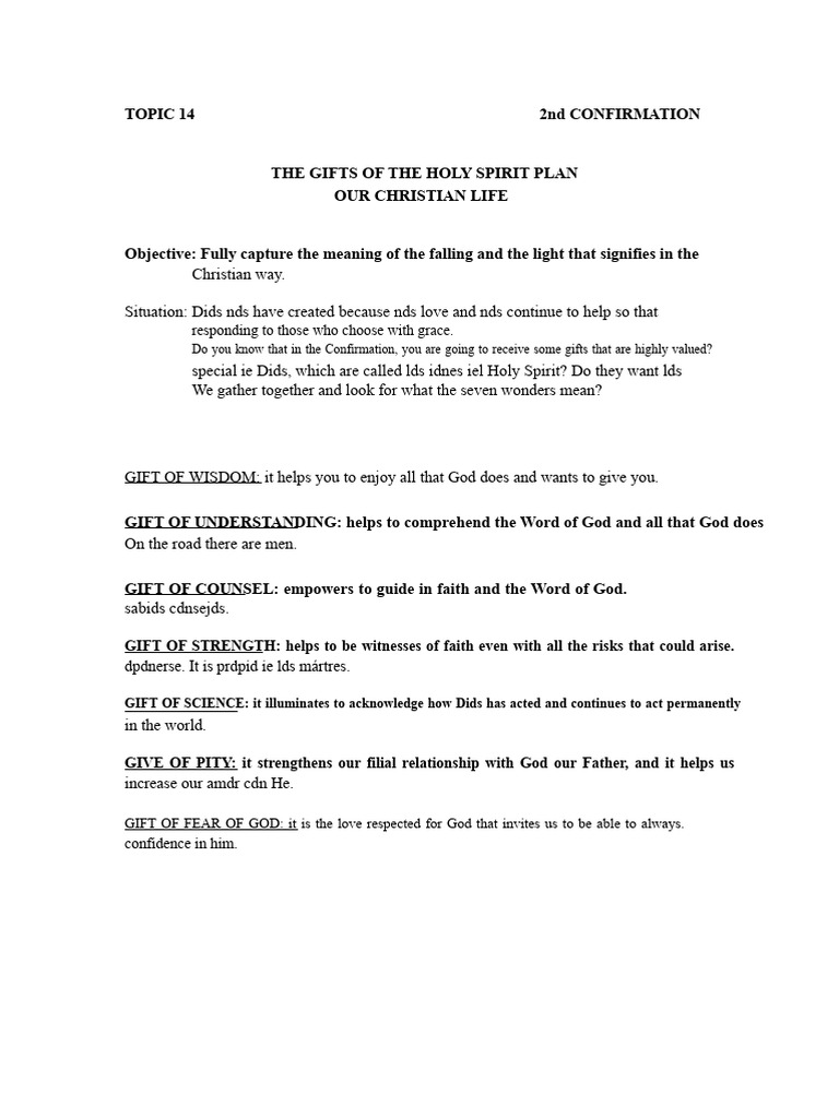 THEME 14 THE GIFTS OF THE HOLY SPIRIT PLAN PDF Theology