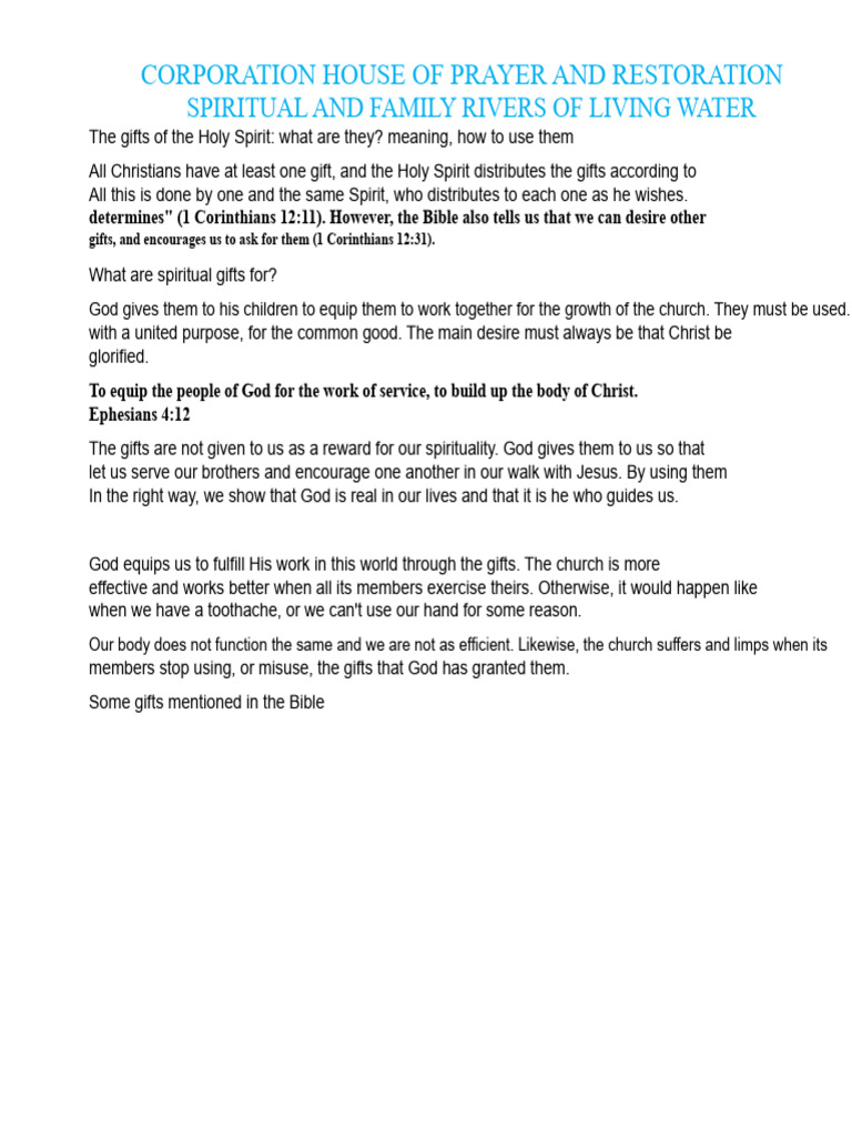 what are the gifts of the holy spirit bible verse Ignacia Haight