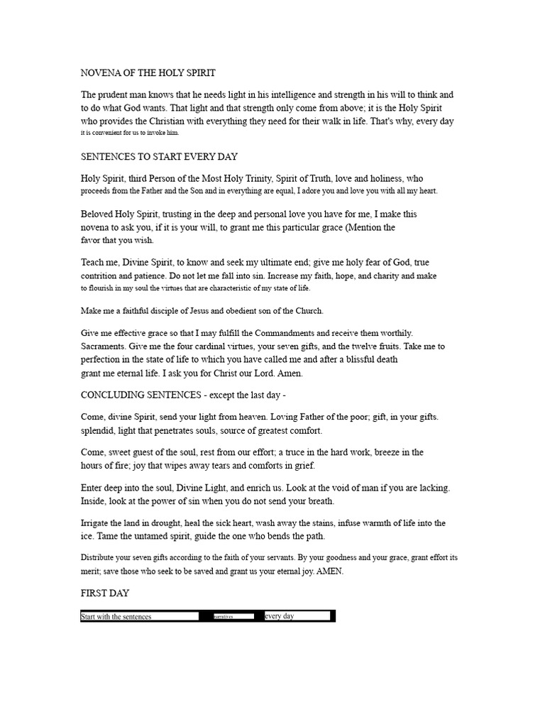 Novena of The Holy Spirit PDF Grace In Christianity Holy Spirit