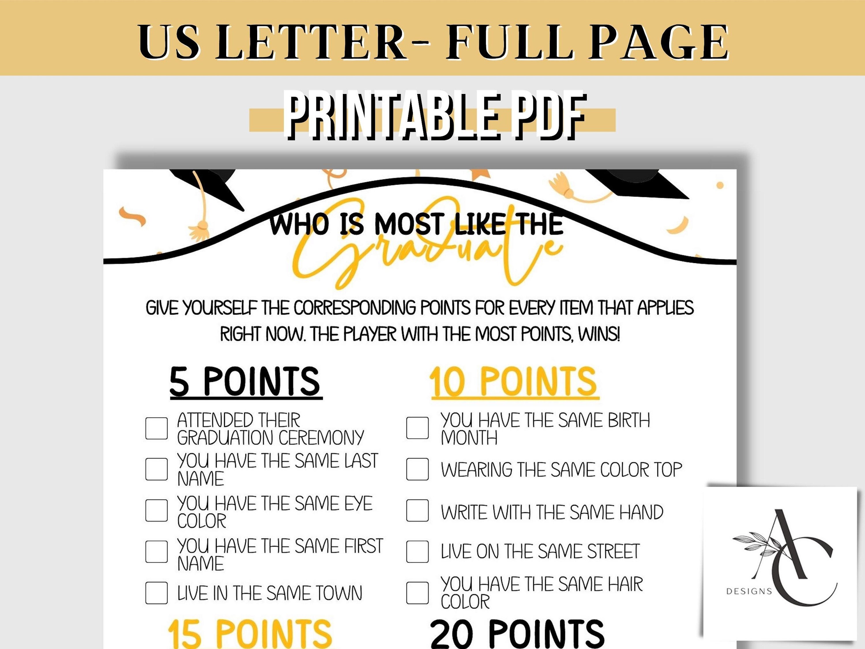 24 free printable graduation games Artofit