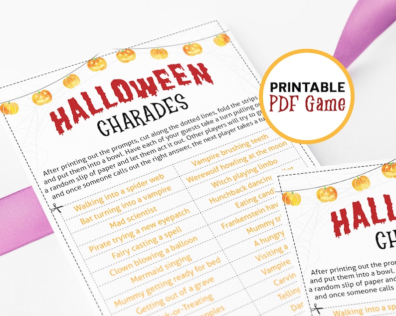 Halloween Charades Game Printable Fun Halloween Game Etsy