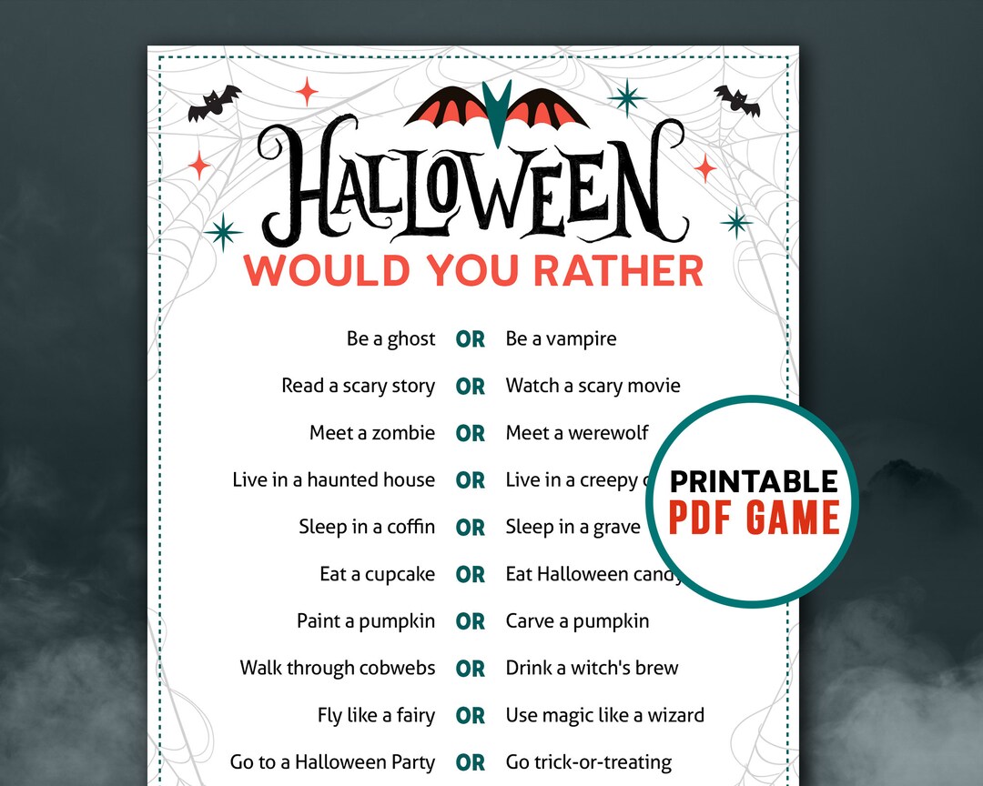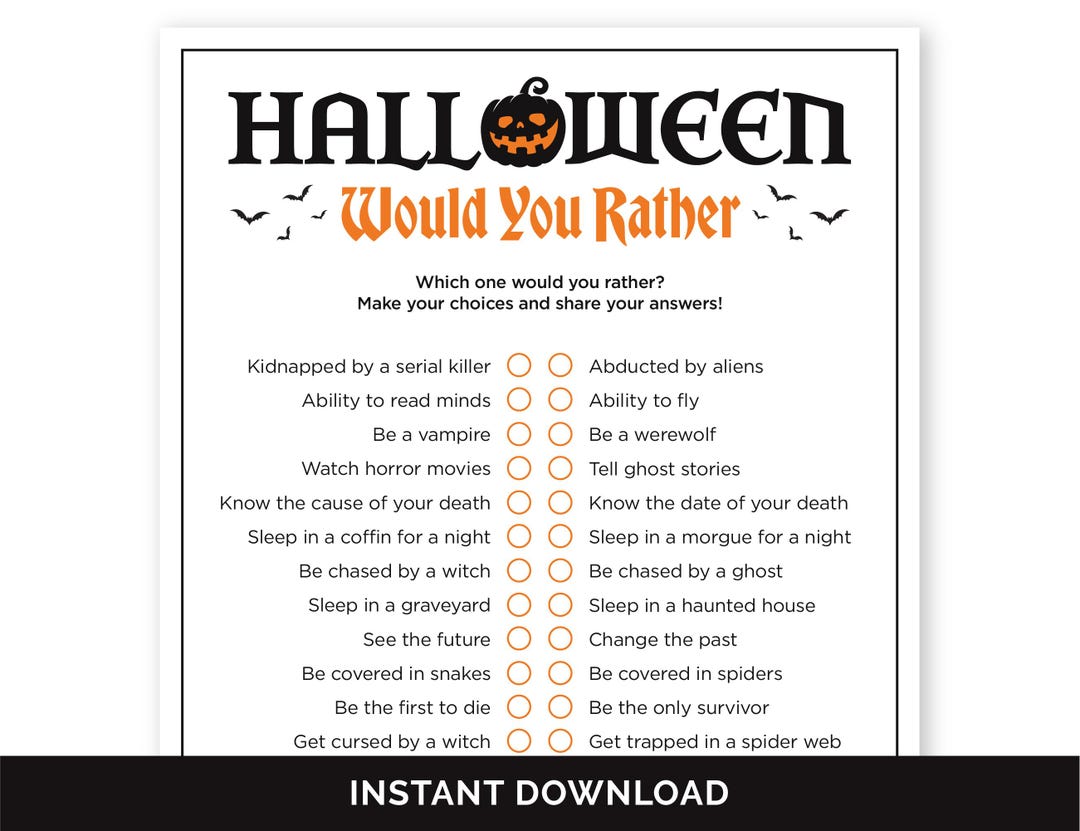 Halloween Would You Rather Printable Icebreaker Game for Adults