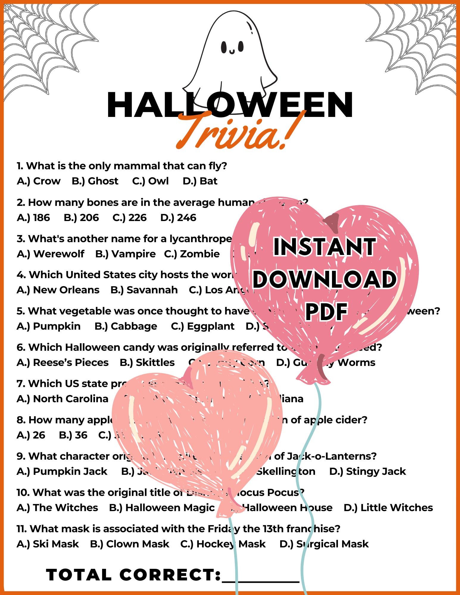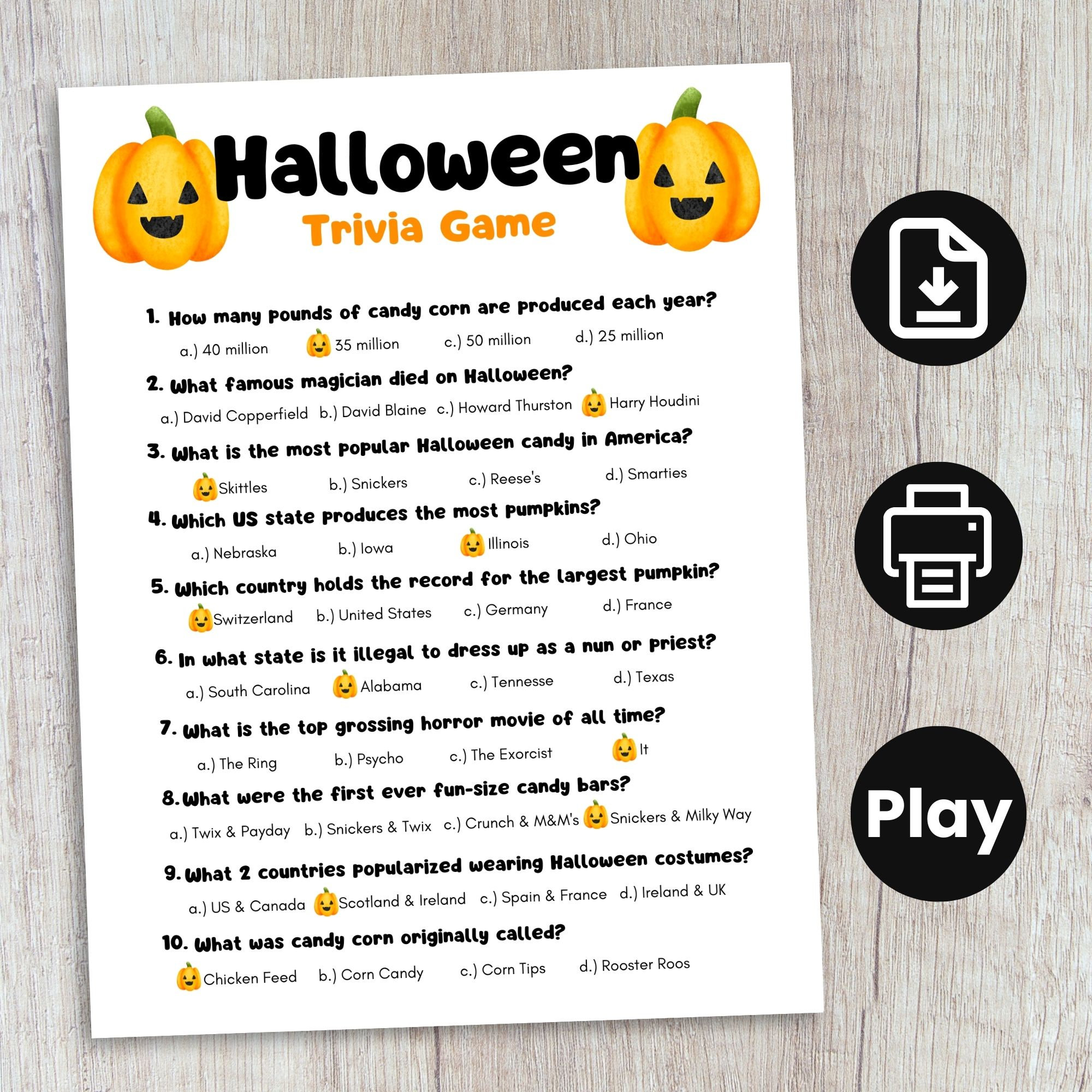 Halloween Trivia Game Printable Halloween Game for Kids and Adults