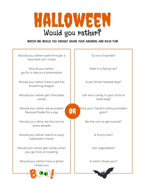 Spooky Halloween Fun Printable Would You Rather Game Halloween Party