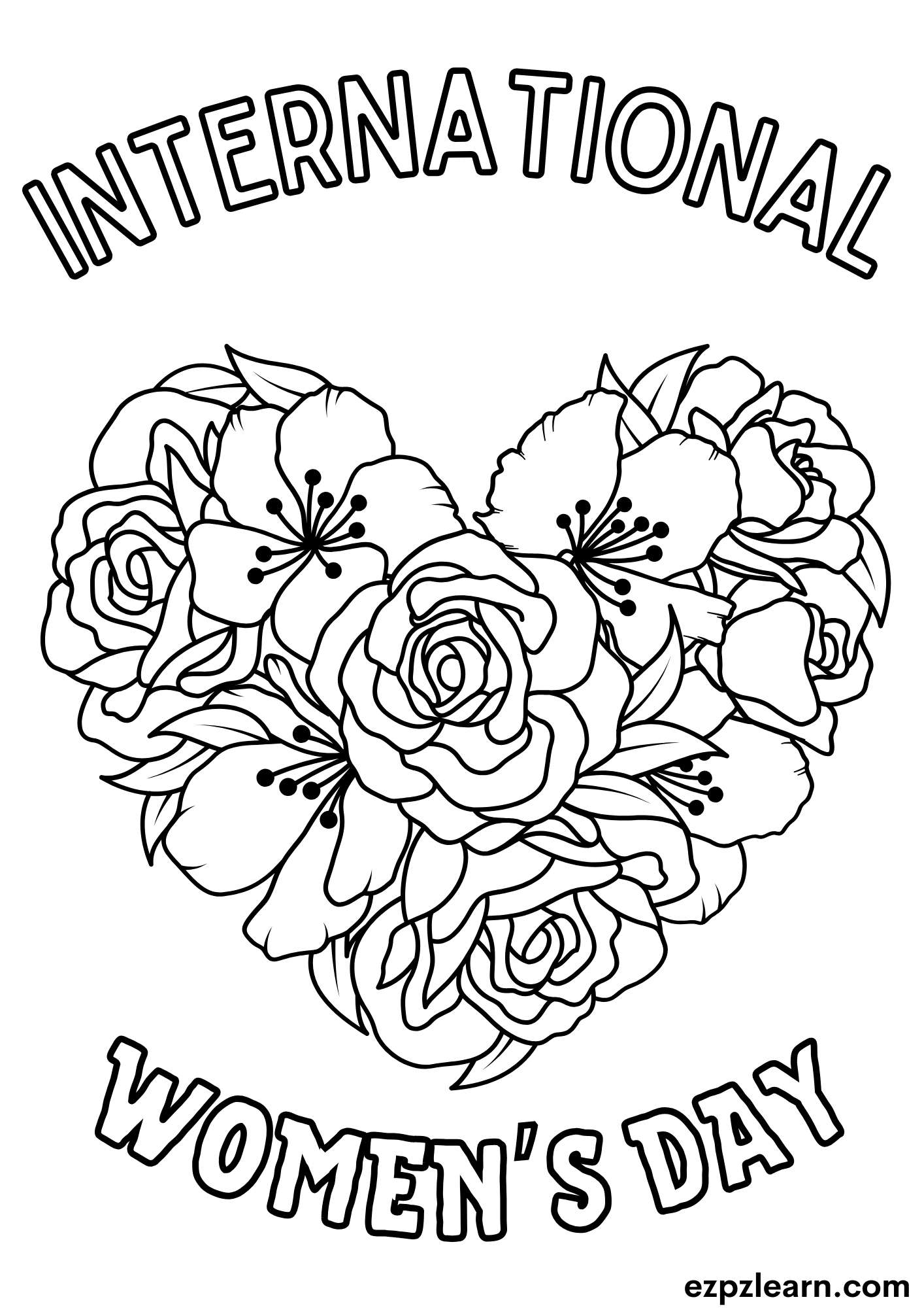 International Women #39 s Day Coloring Heart of Flowers Activity pdf