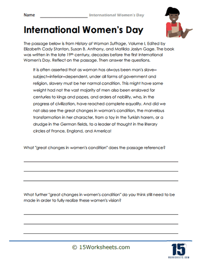 Free Printable International Women #39 s Day Worksheet What Is The Main