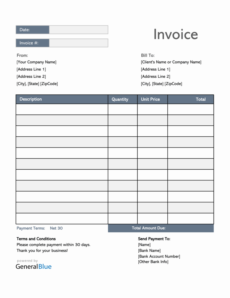 30 Free Download Blank Invoice Templates with PDF Word and Excel
