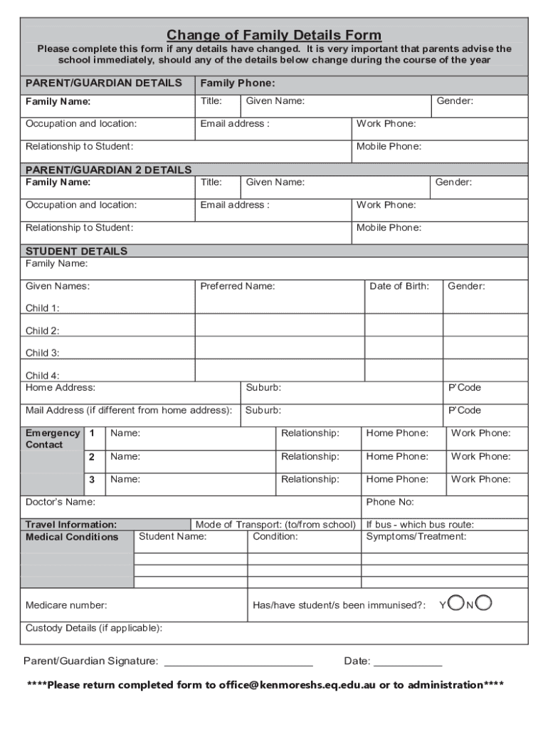 Fillable Online CHANGE OF FAMILY DETAILS FORM Fax Email Print pdfFiller