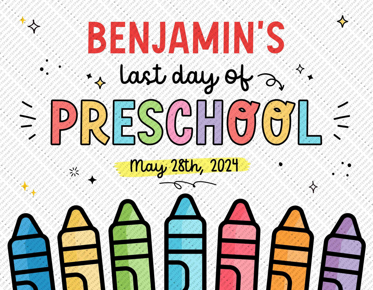 Last Day of Preschool Printable Sign INSTANT DOWNLOAD Cute Party Dash