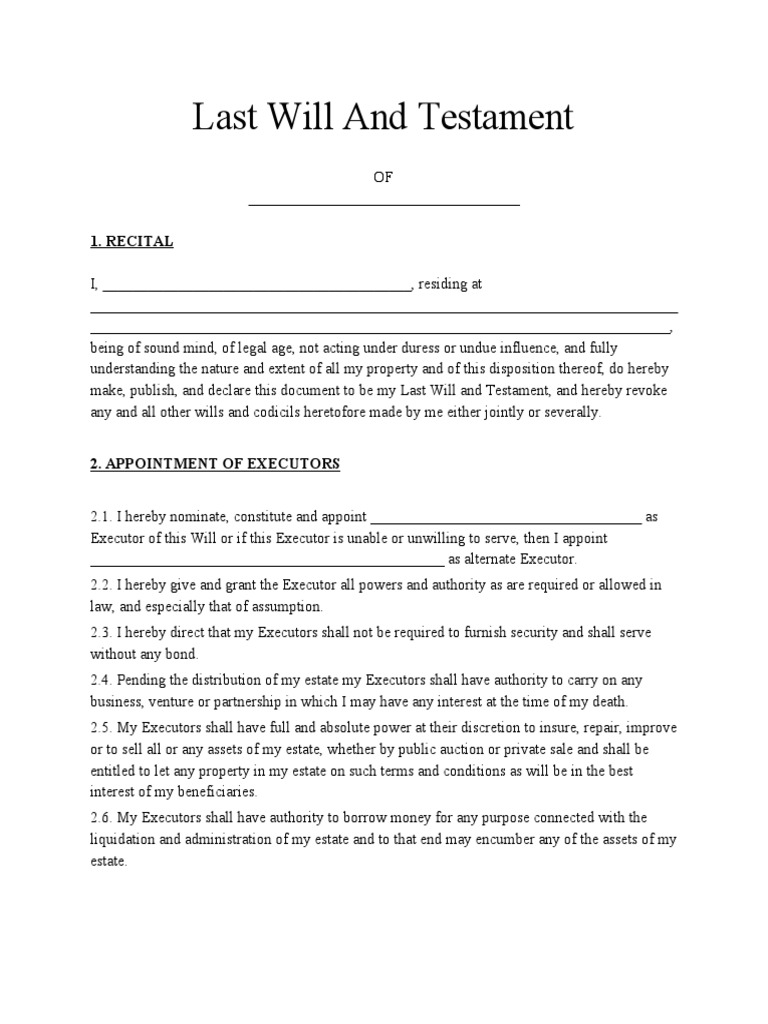 Last Will and Testament: 1 Recital PDF Executor Will And Testament
