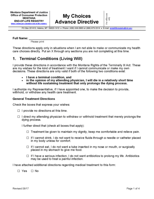 Montana Blank Printable Living Will PDF Free Printable Legal Forms