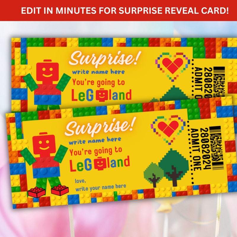 Printable LEGOLAND Surprise Trip Reveal Tickets Editable Etsy