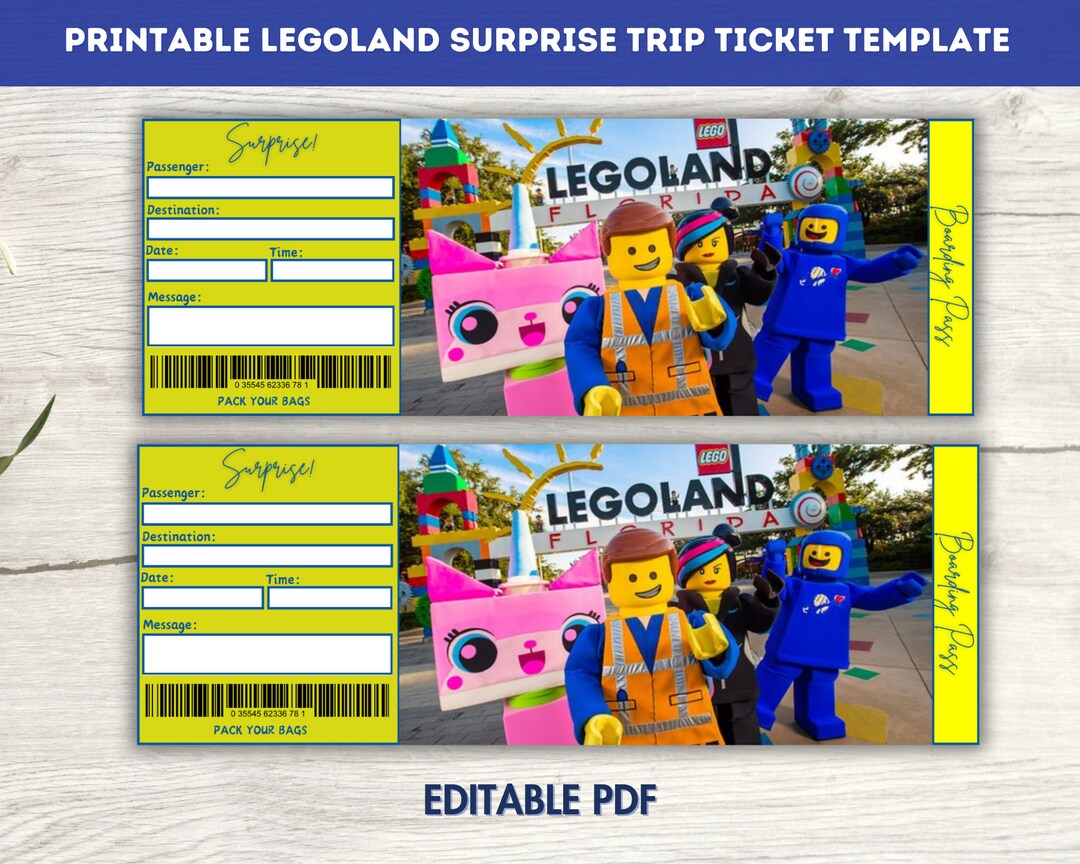 Printable LEGOLAND Surprise Trip Reveal Tickets editable Gift Etsy