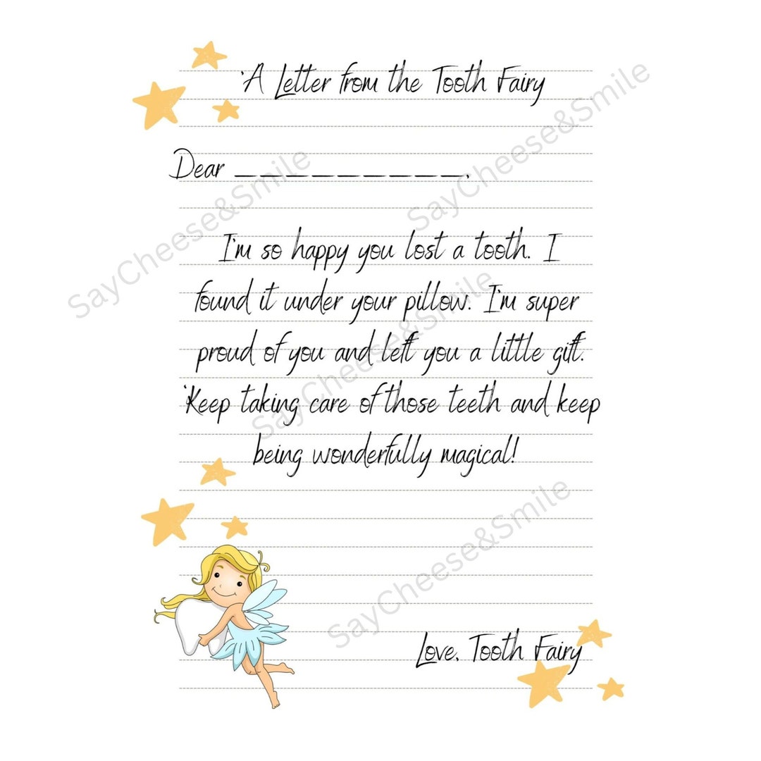 Tooth Fairy Letter Printable Etsy