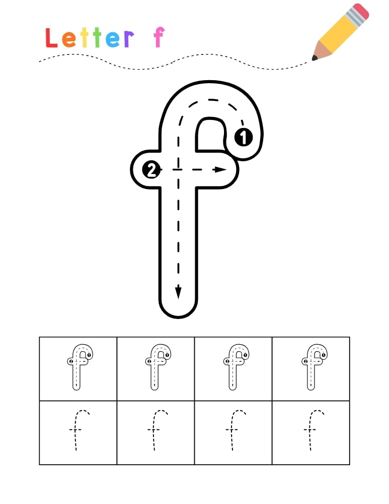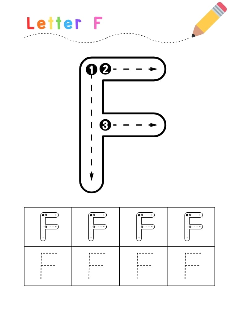 Free Printable Unicorn Themed Letter F Tracing Worksheets for Kids