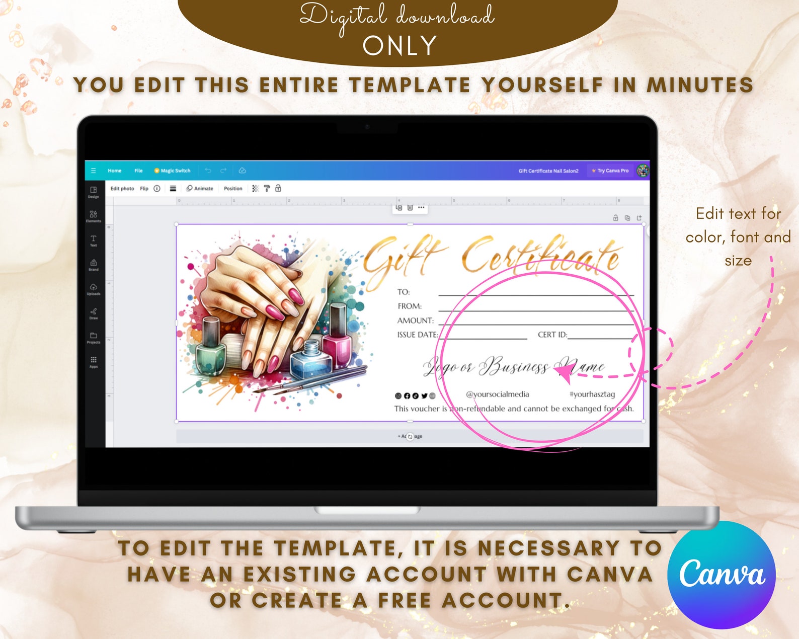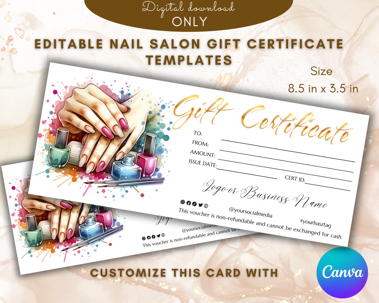 Printable Nail Salon Gift Certificate Fillable Template Manicure