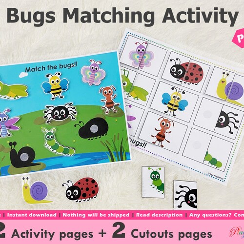 Bugs Matching Activities Printable Shadow or Silhouette Etsy