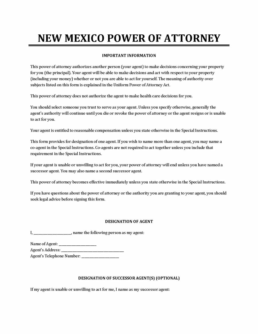 Free Printable Power Of Attorney Forms New Mexico Printable Forms