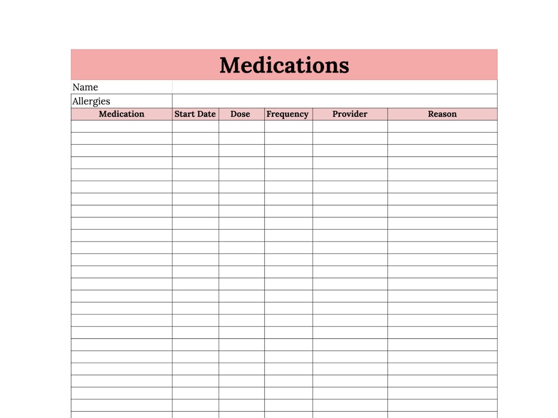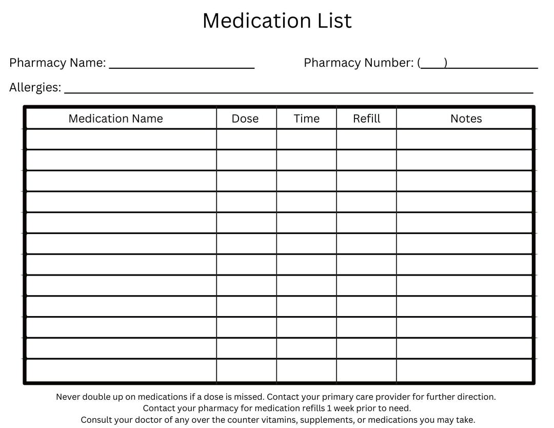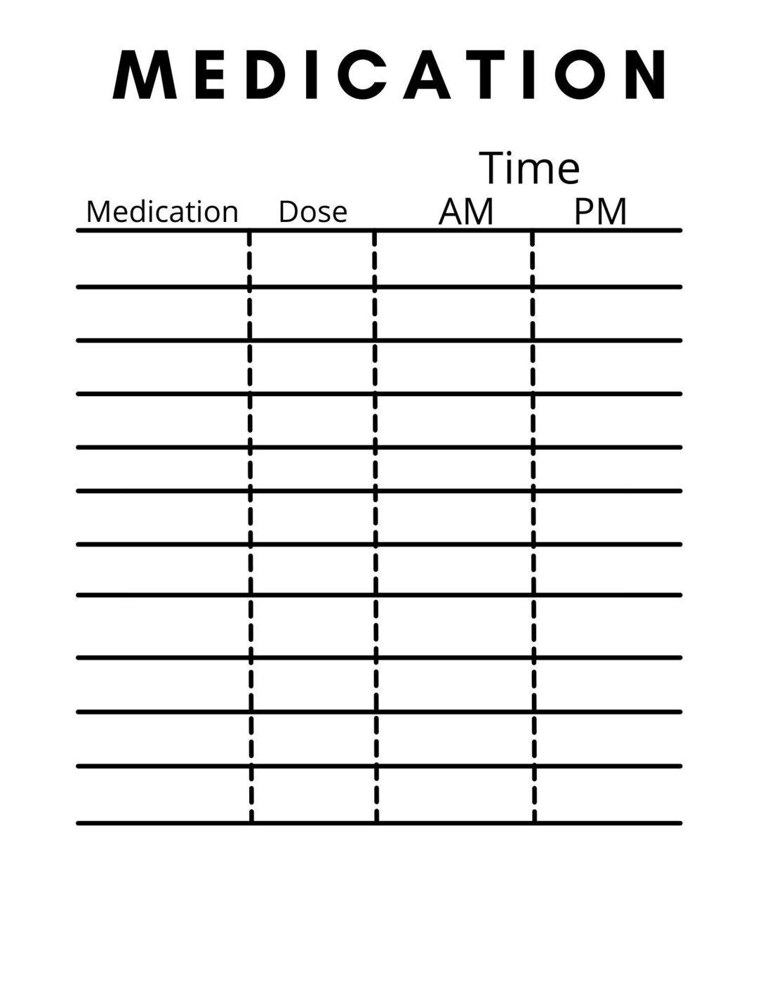 Printable Medication List Planner Page Log Book Meds Healthcare