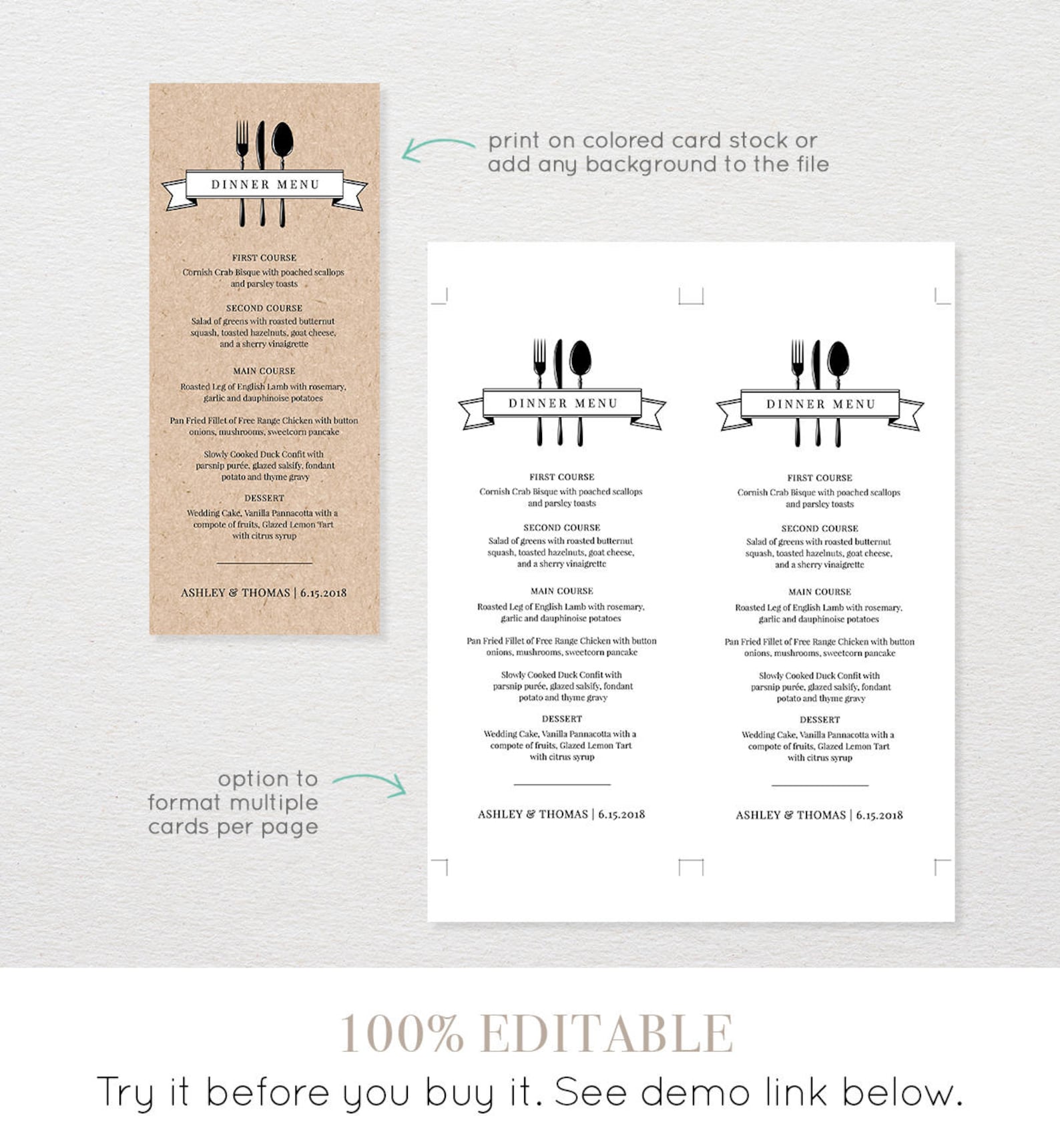 Dinner Menu Cards Printable Template Table Party Decoration Etsy