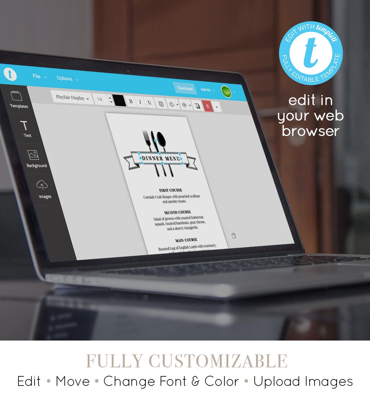 Menu Card Template Event Table Card Editable Dinner Menu Card