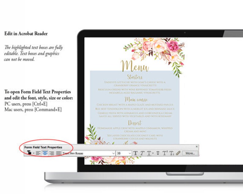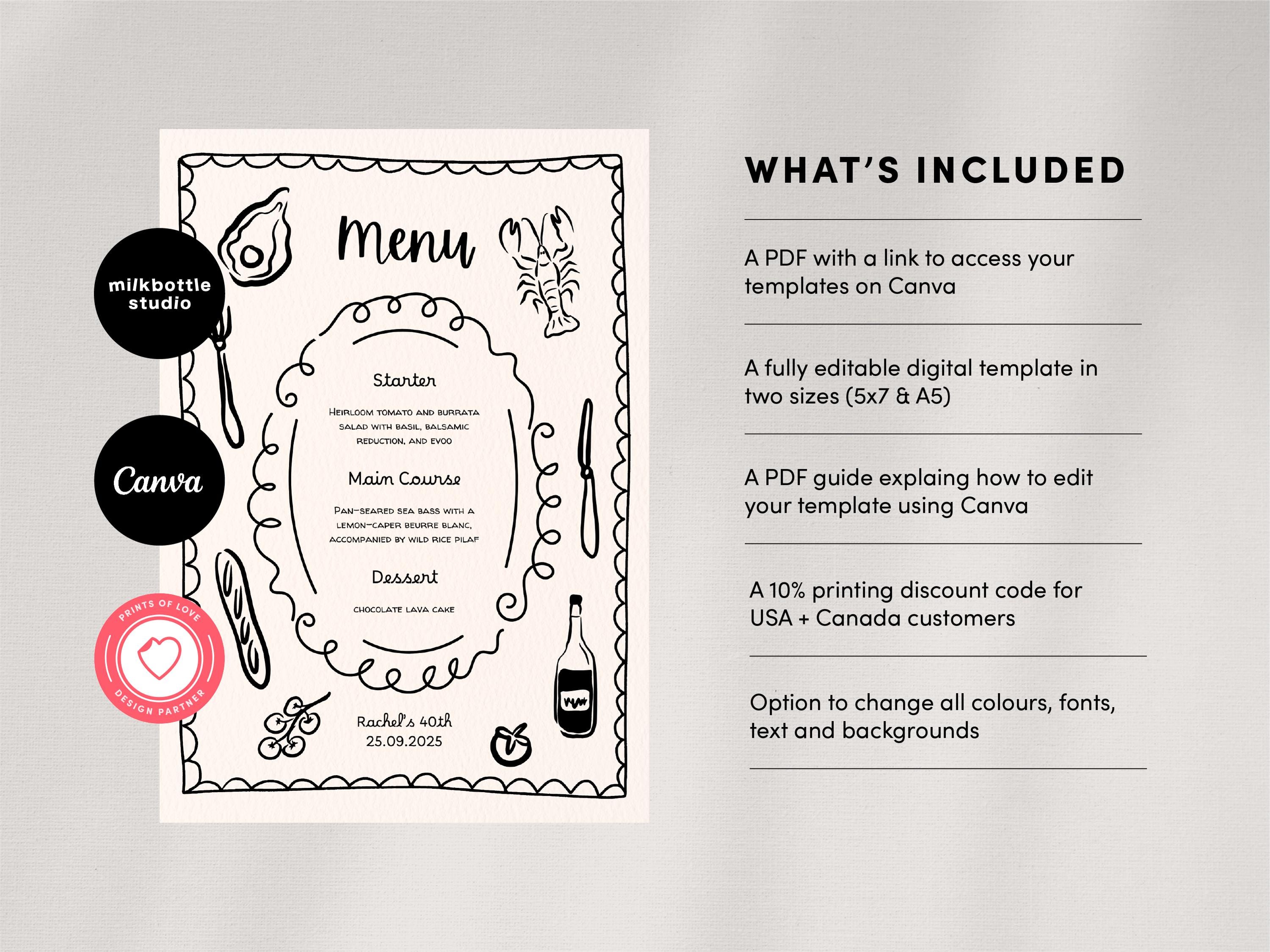 DiY Printable Menu Card DOWNLOAD Instantly by KarmaKWeddings