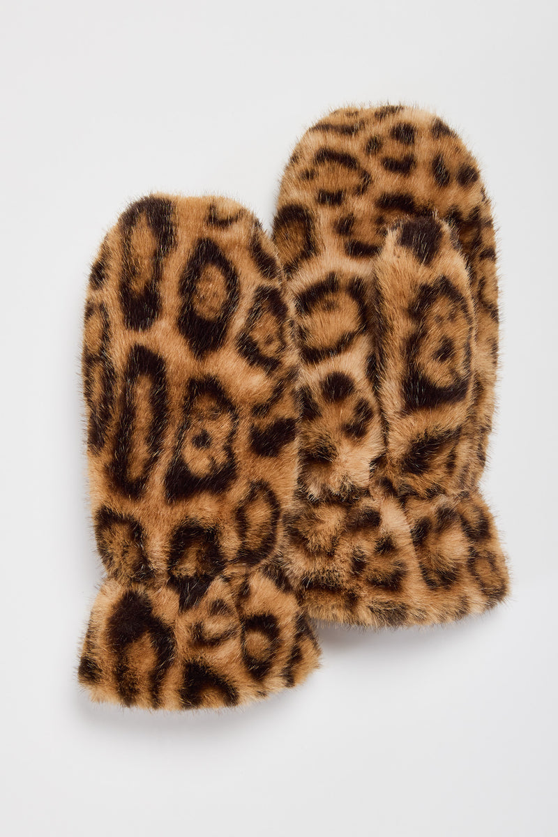 Leopard Print Fur Mitten with Fleece Lining Eclipse