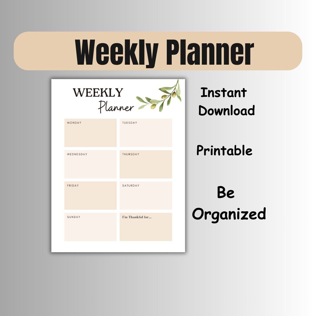 Weekly Printable Planner Downloadable Monday to Sunday Planne R Be