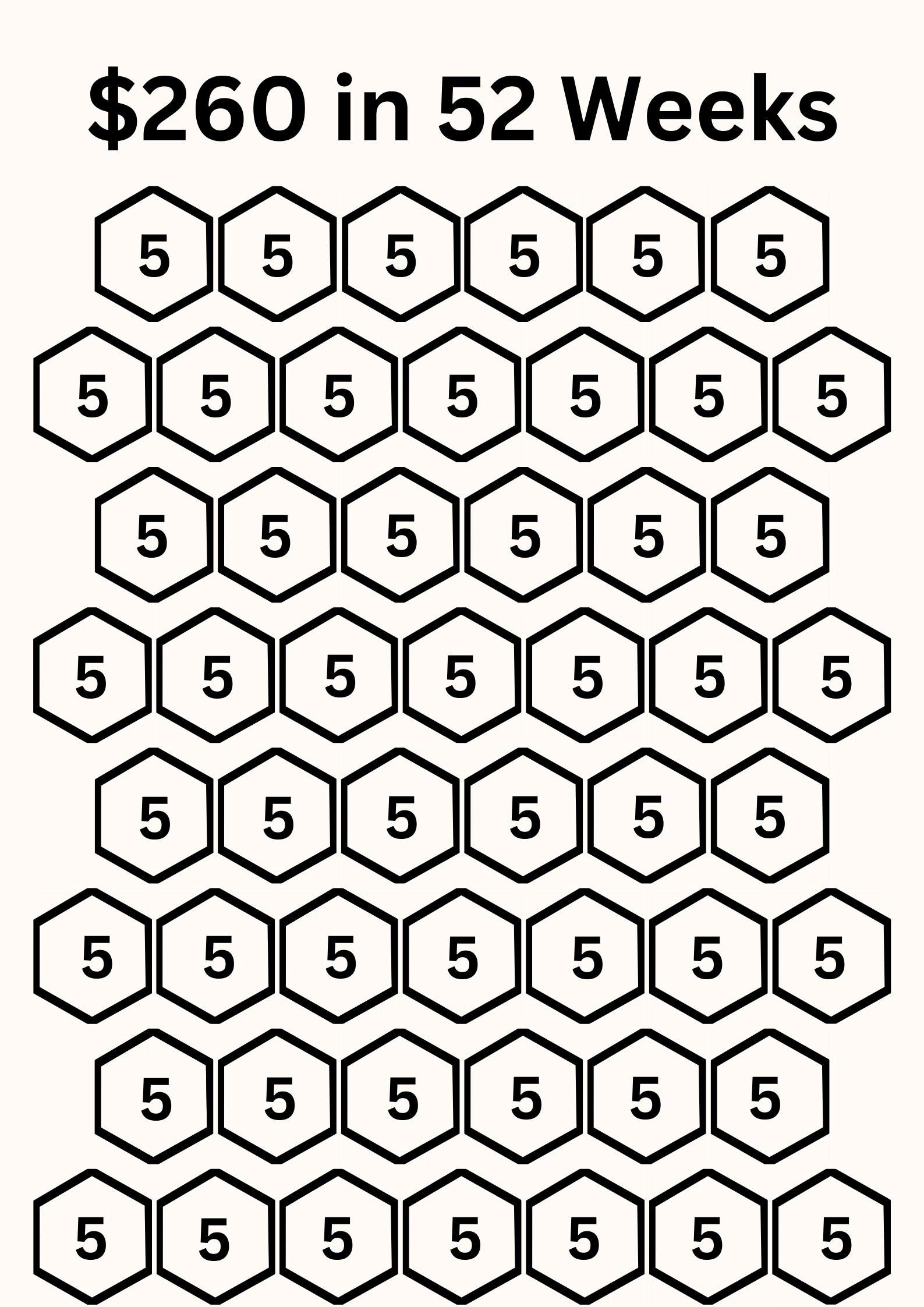 52 Week Money Saving Challenge Tracker Printable One Page Planner for 2
