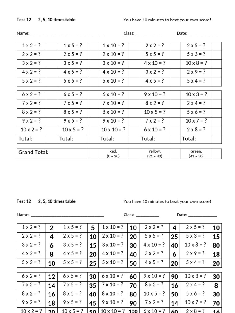Multiplication Tables: Free Printable PDF Templates Worksheets Library
