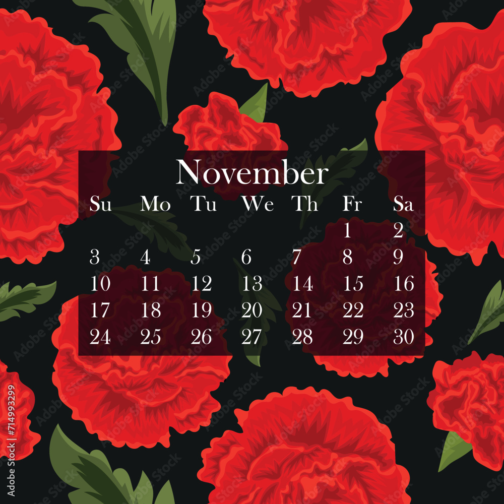 November 2024 Floral Monthly Calendar Design Vector November 2024