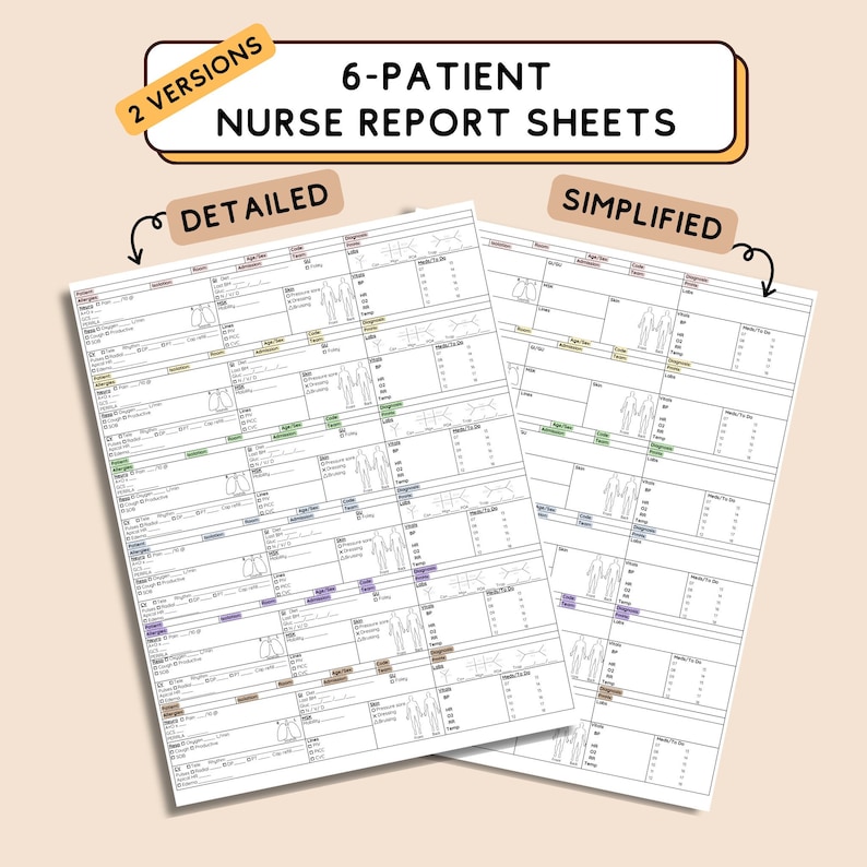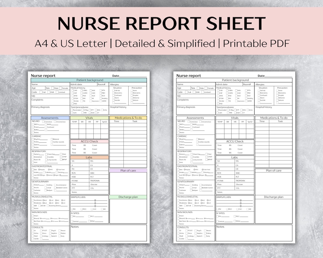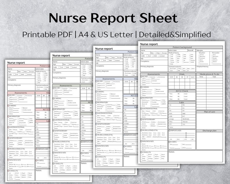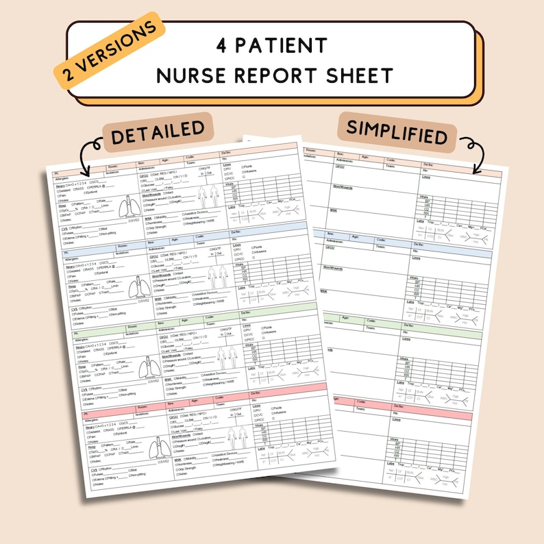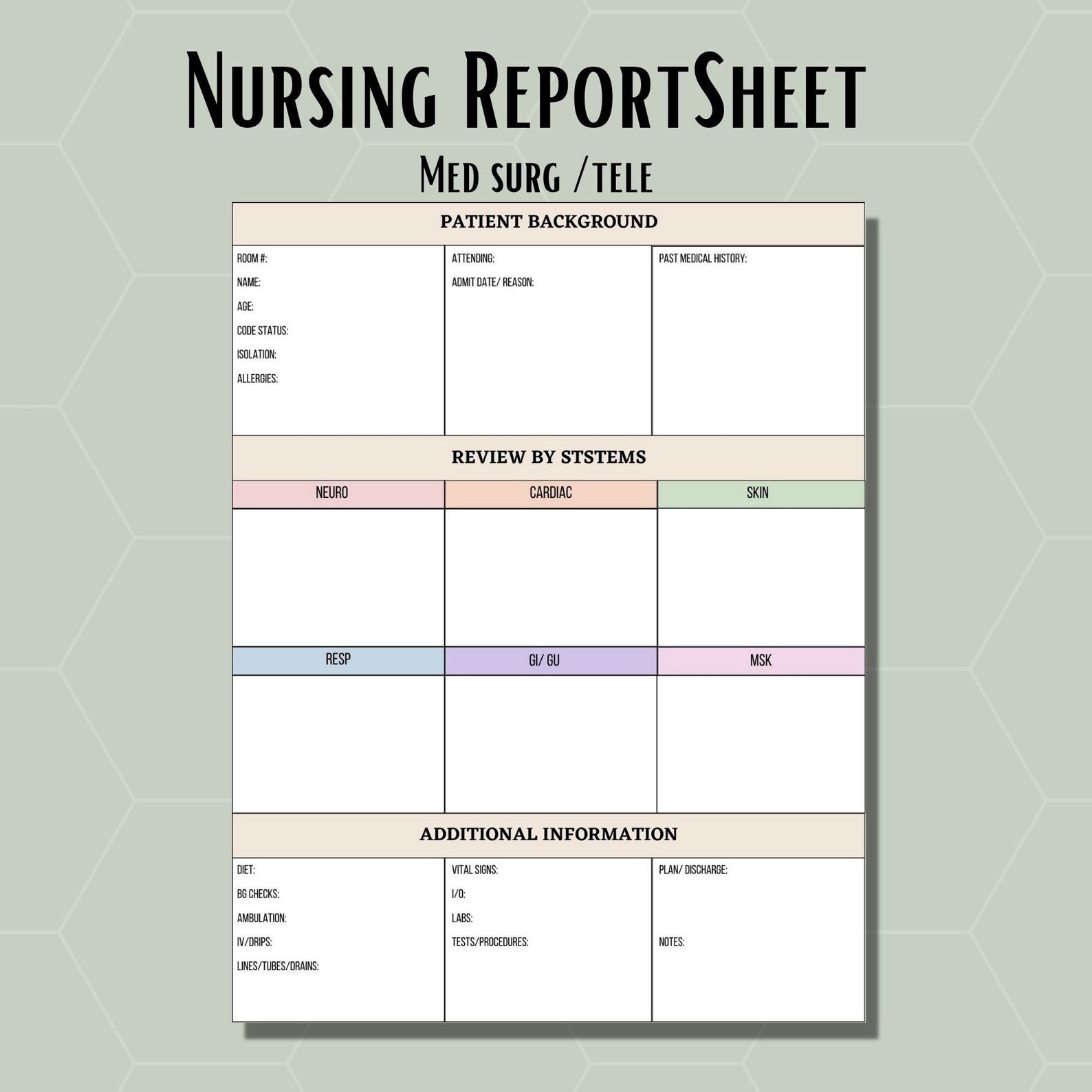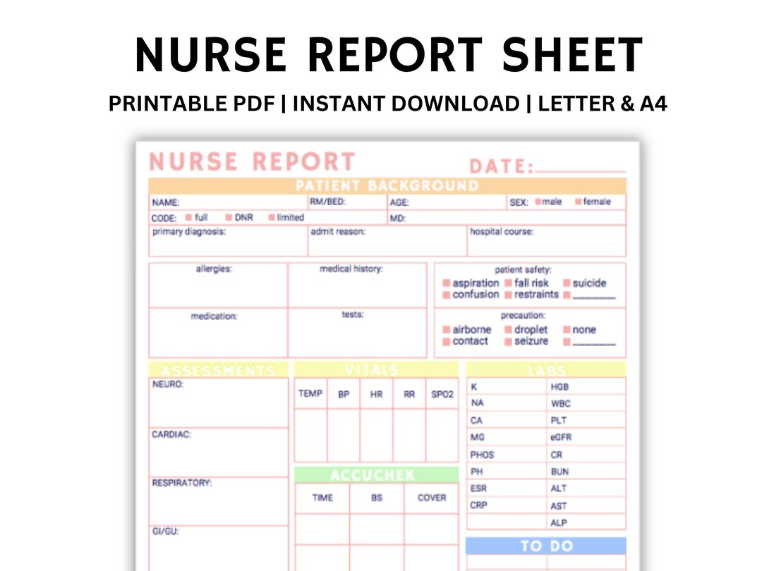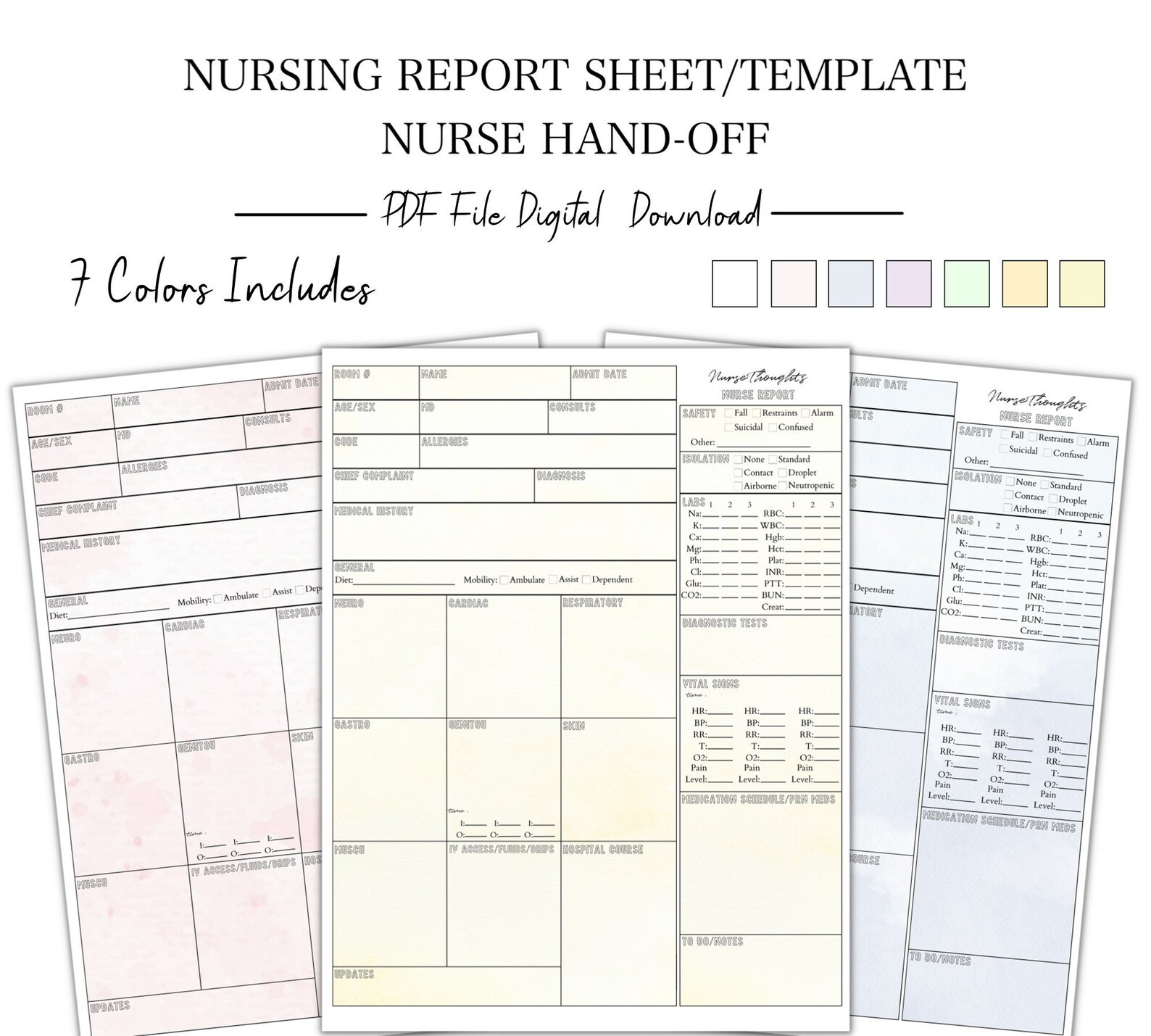 Nurse Report Sheet Nursing Report Sheet Nurse Brain Sheet Etsy New