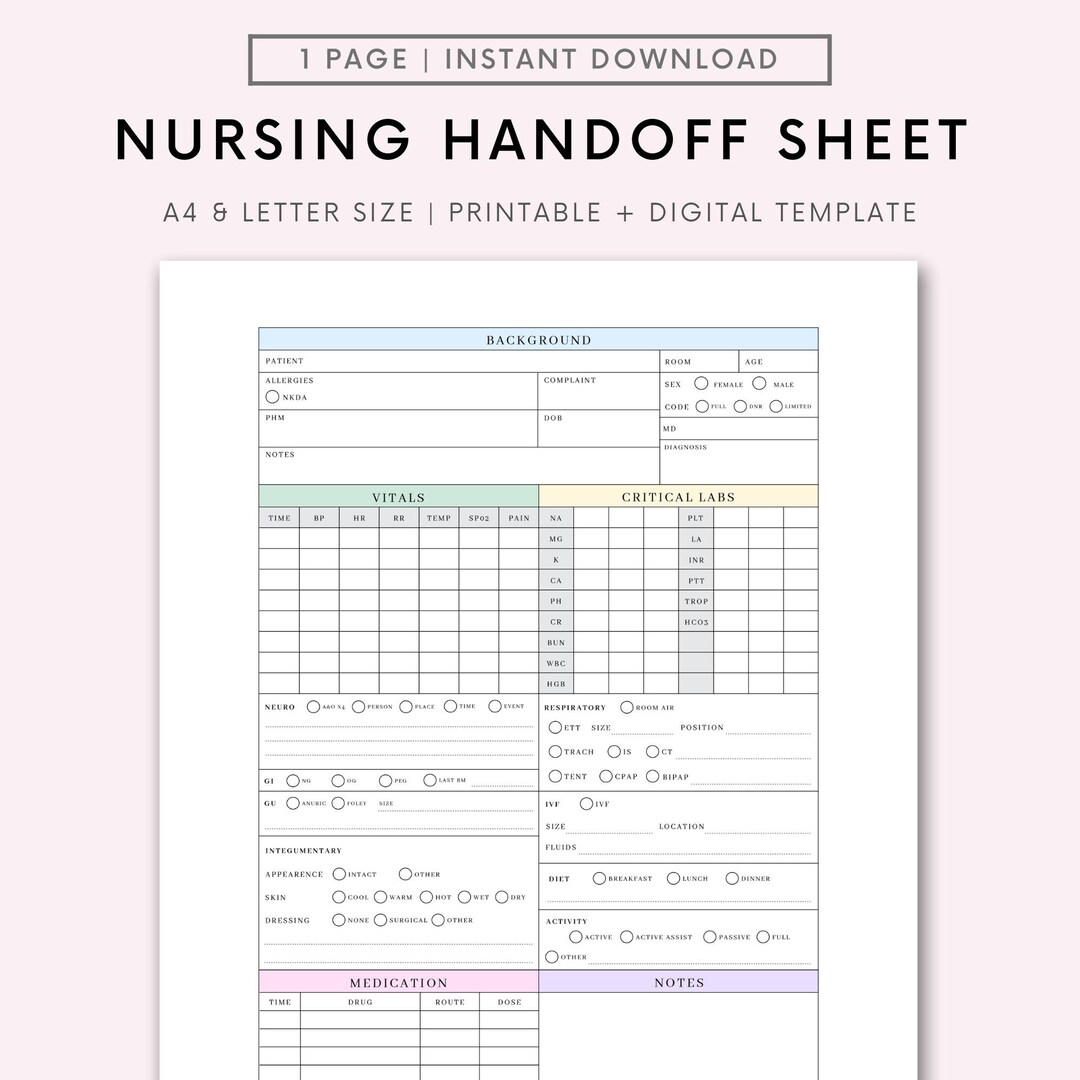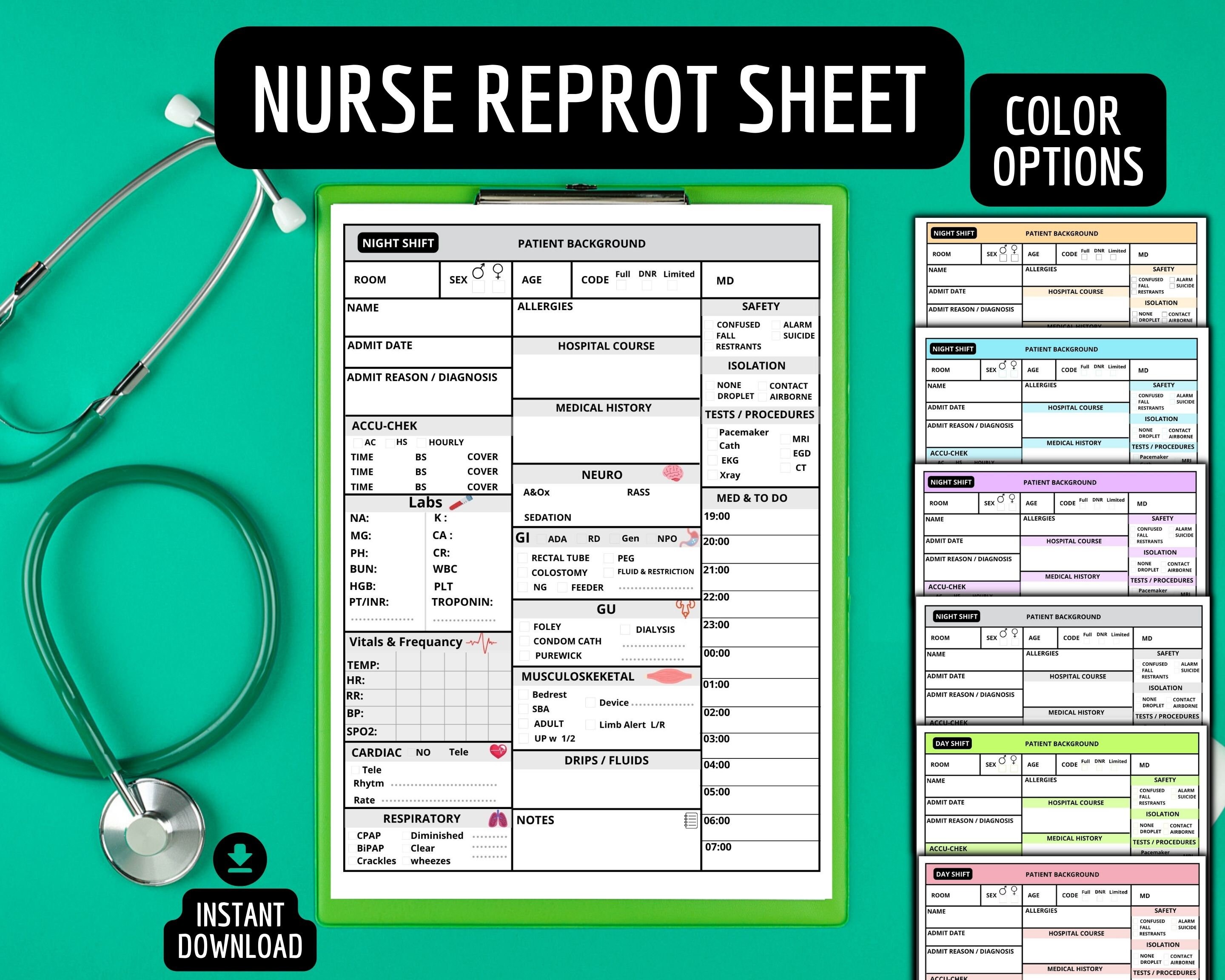 Printable Nursing Report Sheet Day and Night Shift Single Etsy