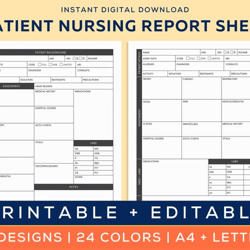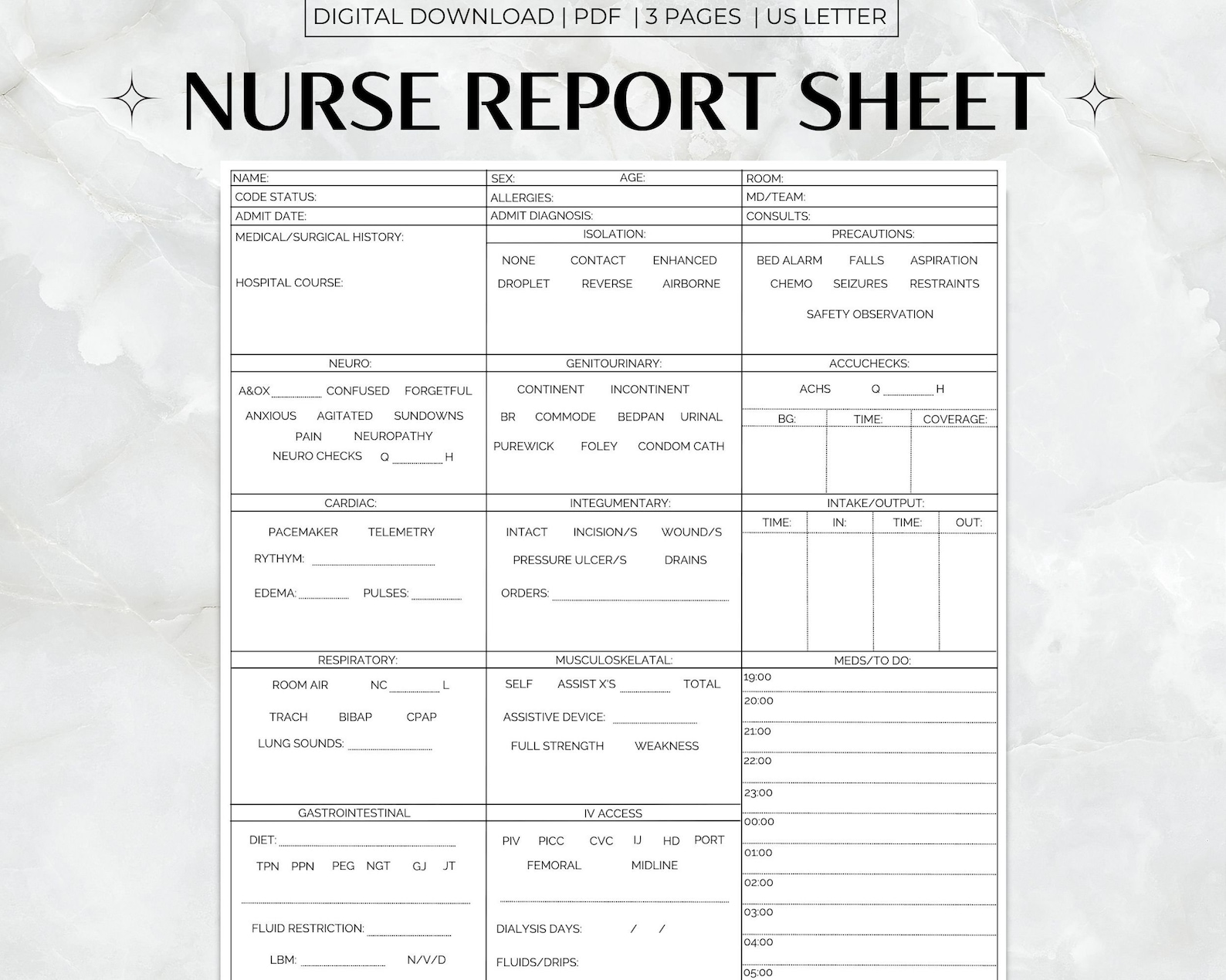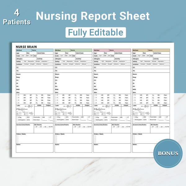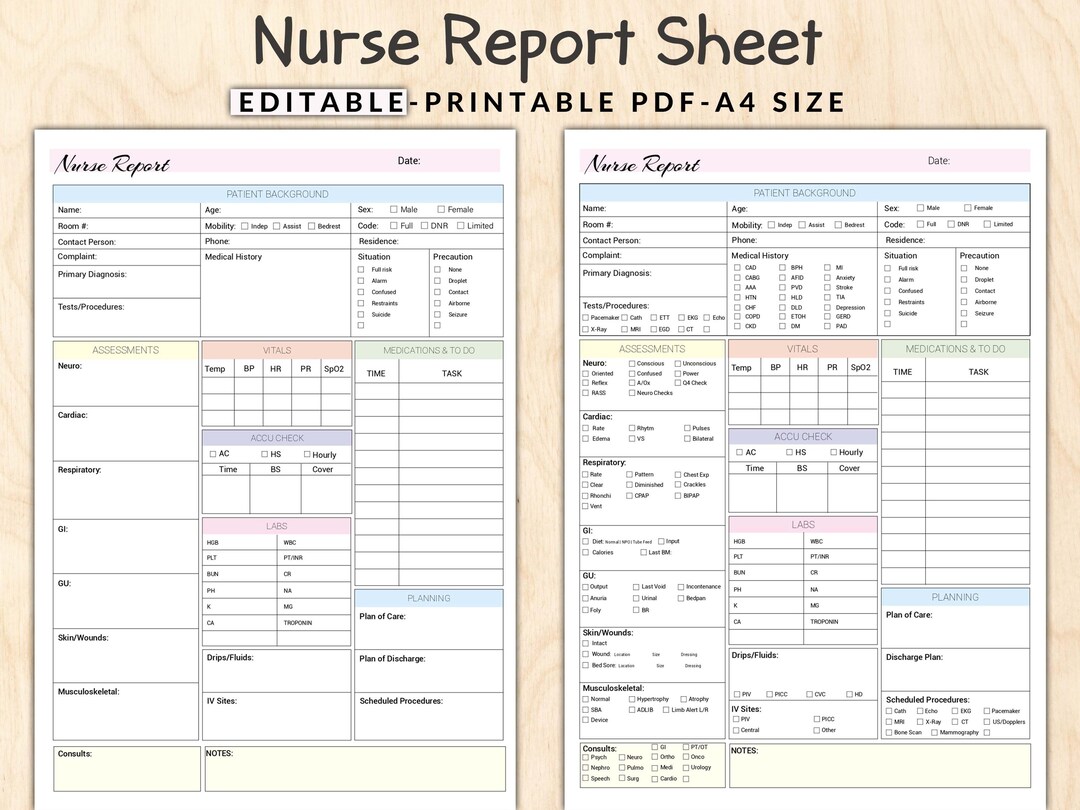 Editable Nursing Report Sheet Nurse Brain Sheet Nurse Report Etsy