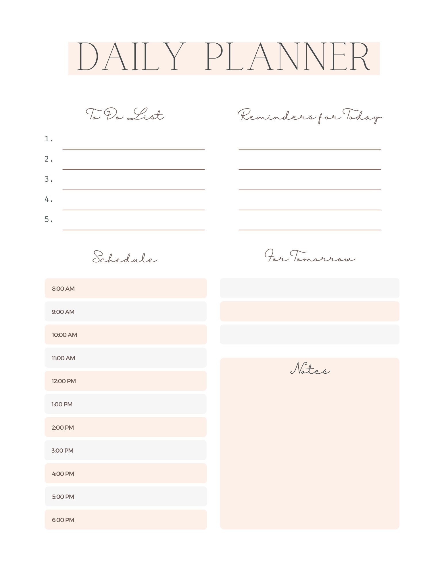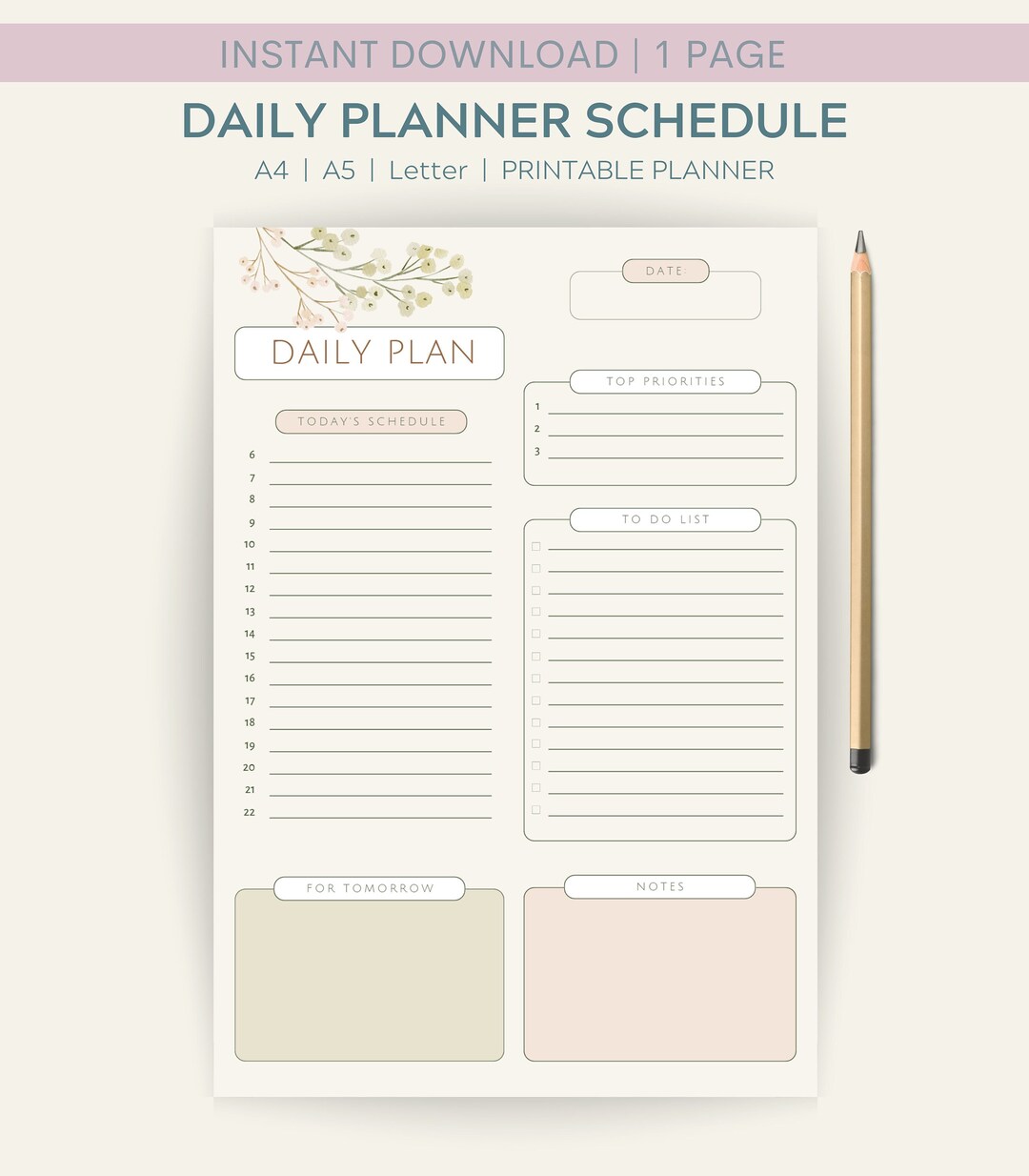 Daily Planner Daily Planner Printable Daily Organizer Daily Schedule