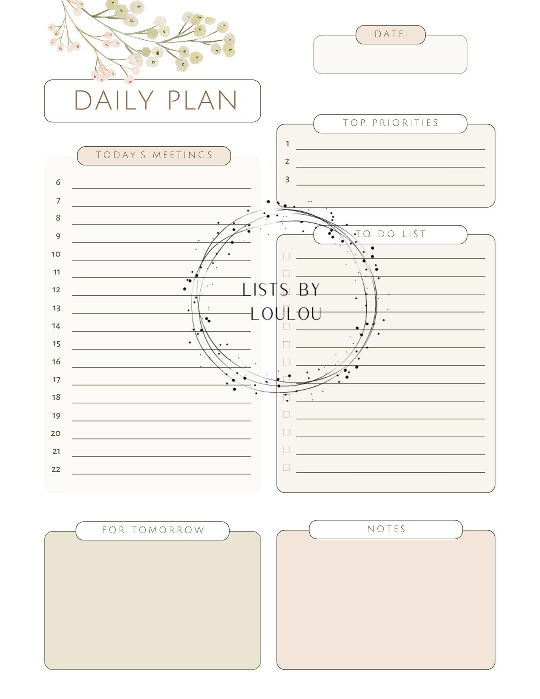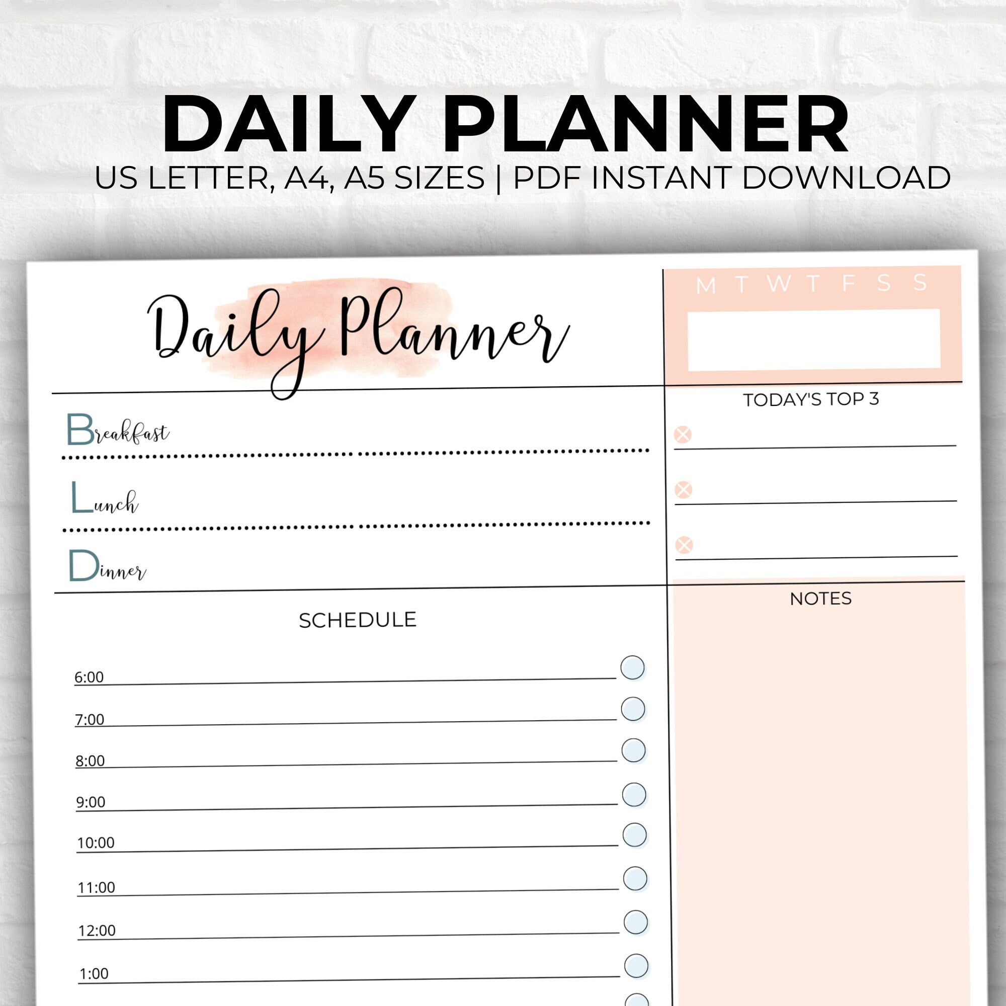 Daily Planner Day Planner Printable Todays Plan DIGITAL DOWNLOAD Etsy