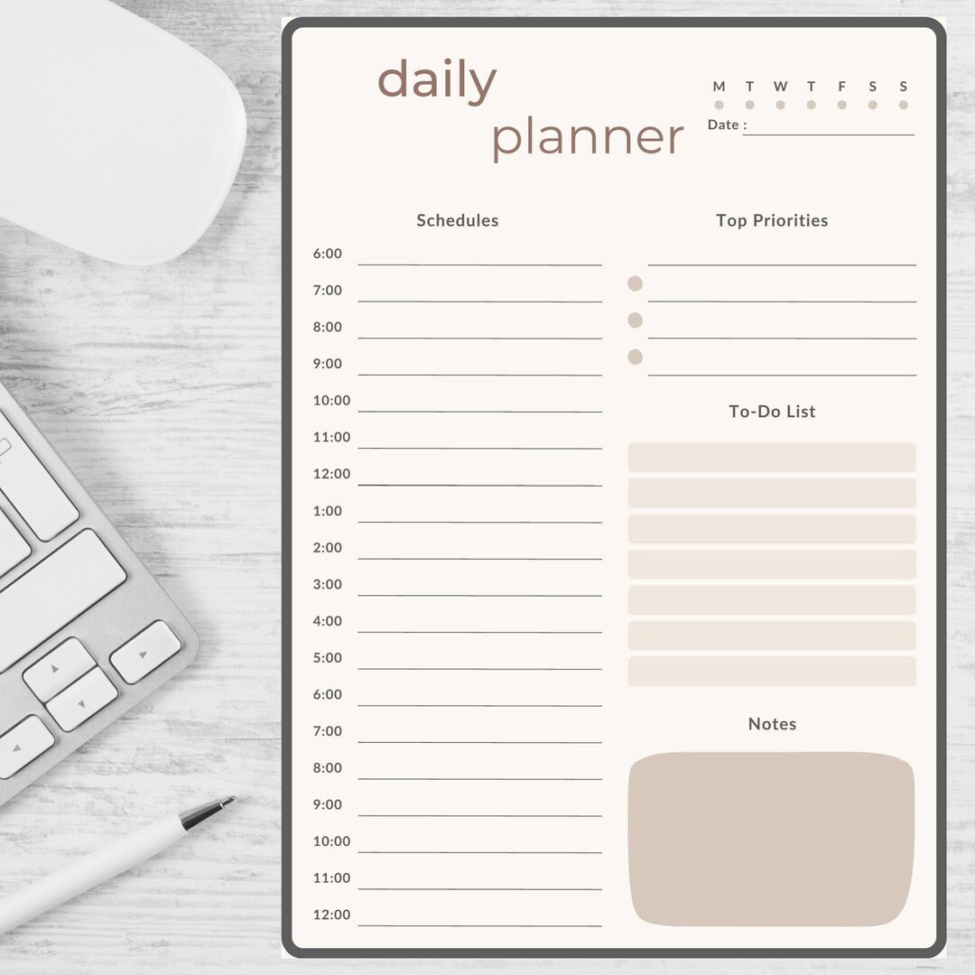 Minimal Daily Planner Printable Digital Planner Editable Daily Schedule