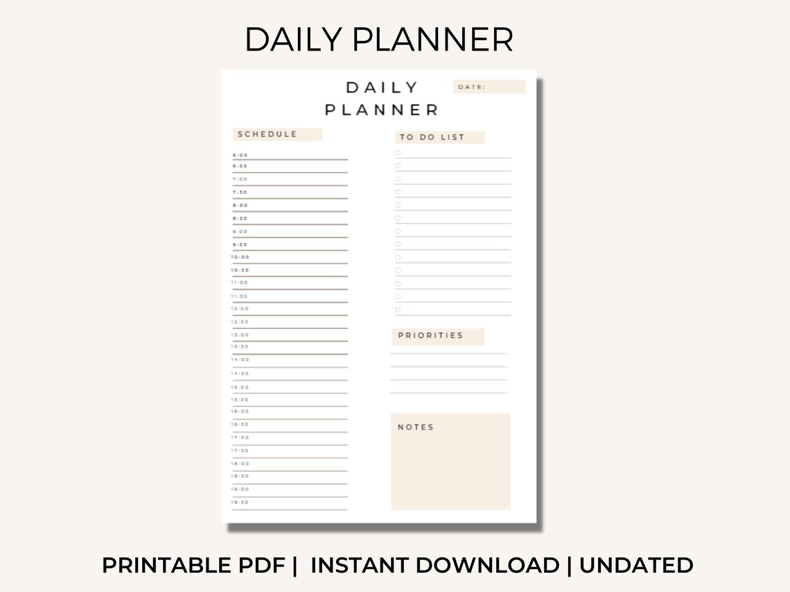 Daily Planner Printable Daily Planner Digital Daily Planner Hourly